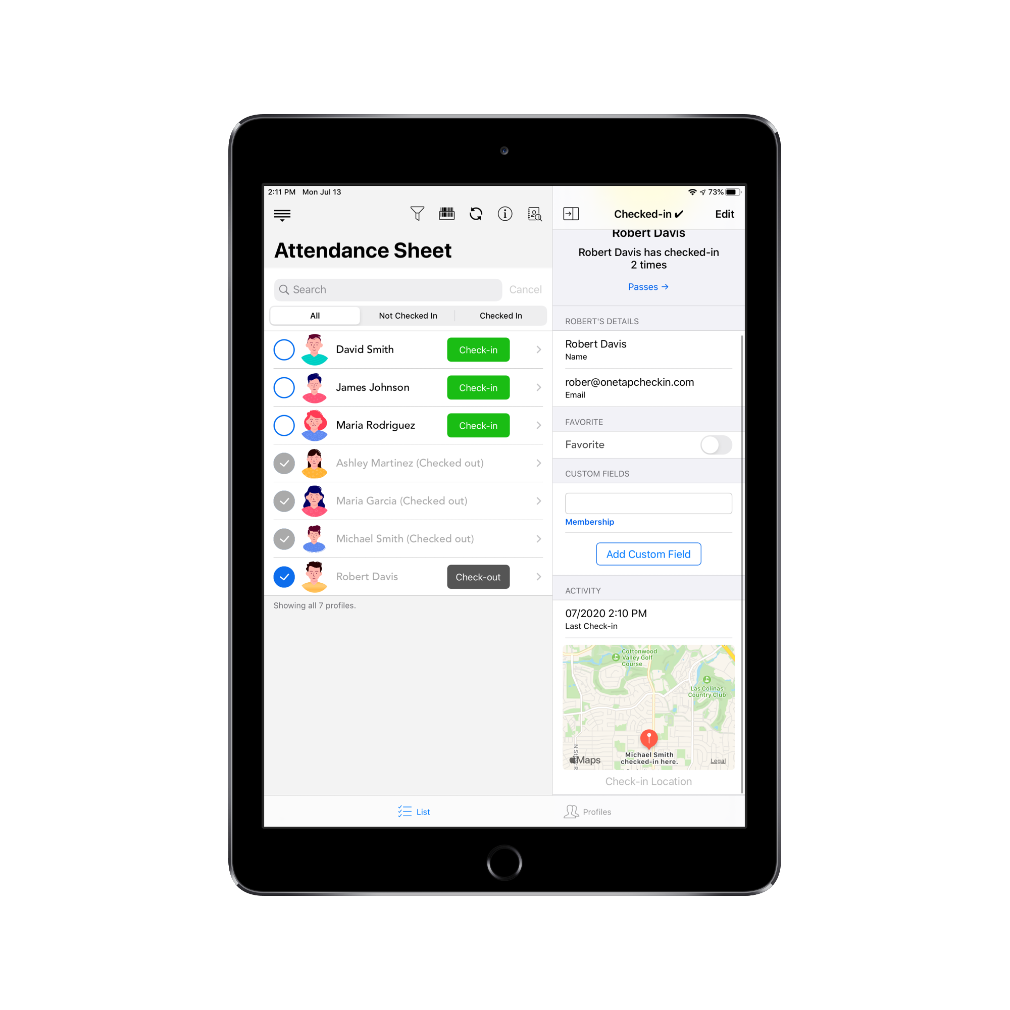 Turn Excel files into guest lists. Create a check-in process using an iPad or iPhone. Keep track of attendance, check-in and check-out visitors effortlessly.